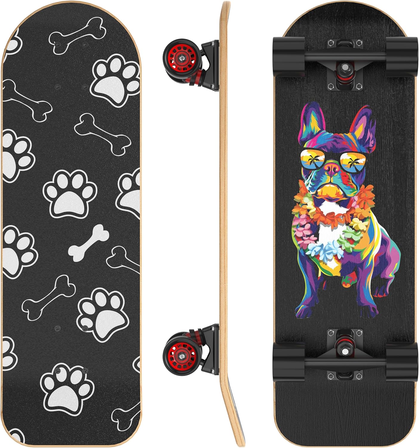 26 Inch Large Pet Skateboard for Dogs and Pets - Canadian Maple Deck, Aluminum Trucks, PU Wheels - No Assembly Required - Max Load 150 lbs for Pets with T-Tool