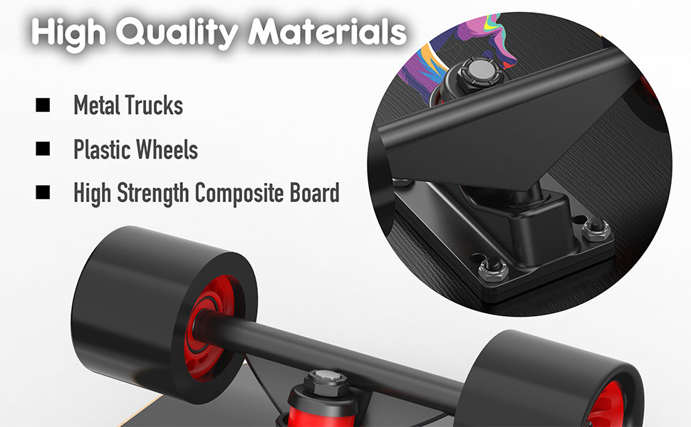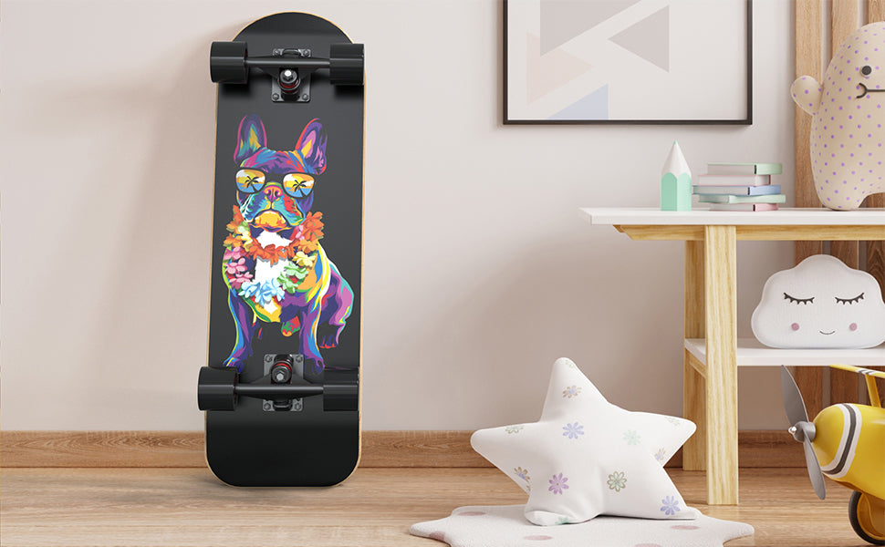 This is a beautiful and well built skateboard. Too big for my small dog though.