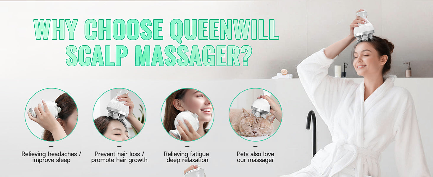 Queenwill Electric Cordless Scalp Massager Head Scalp Stress Relax, Handheld Portable Head Scratcher Massage for Hair Growth, Claws Cat Massager with Kneading 84 Massage Nodes, Ideal Gift